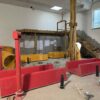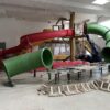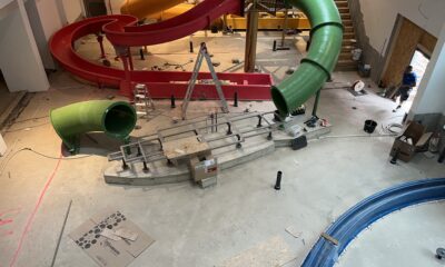 Da das neue Dach fertig gestellt wurde, konnte mit der Installation der neue Rutsche begonnen werden. Diese beginnt am Startpunkt der ehemaligen Rutsche, verläuft über das Dach des neuen Anbaus, wird durch die Außenfassade der Deichwelle ins Hallenbad geführt und endet im Sprungbecken. (mehr …)